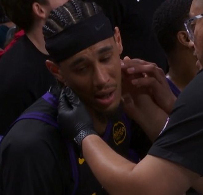 吓得湖人队医暂停的时候马上给海斯检查脖子...