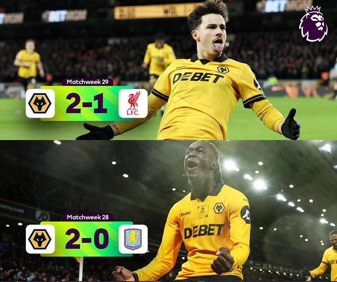 狼队在击败曼联之后判若两队,他们随后一场就3-0大胜西汉姆联,获得赛季首胜,接下来该队又战平埃弗顿和纽卡斯尔联,虽然输给了曼城、伯恩茅斯和切尔西,但接下来又客场战平诺丁汉森林,主场2-2绝平阿森纳。