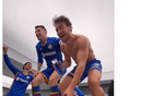 伯纳乌抢分成功,赫塔费球员在更衣室的桌子上激情跳舞庆祝
